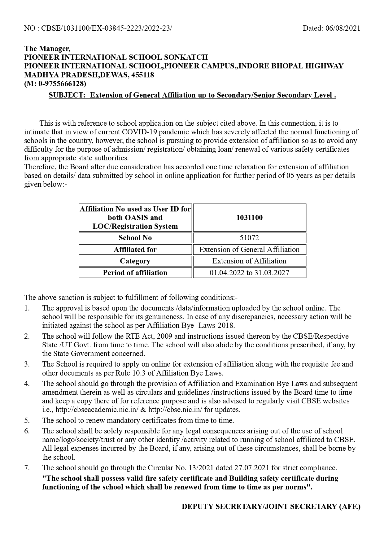 CBSE Affiliation Letter