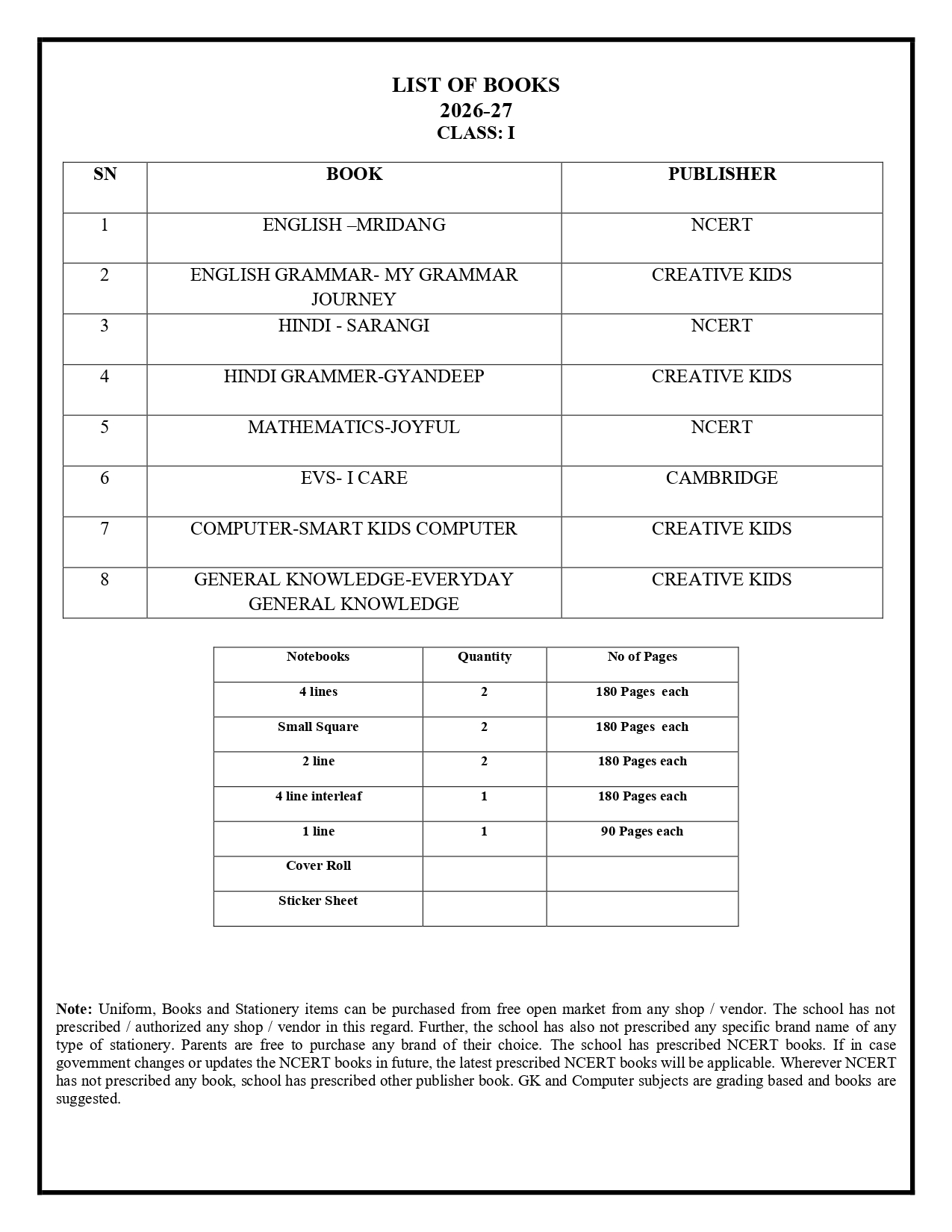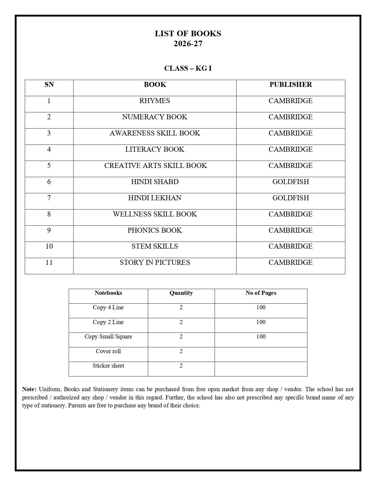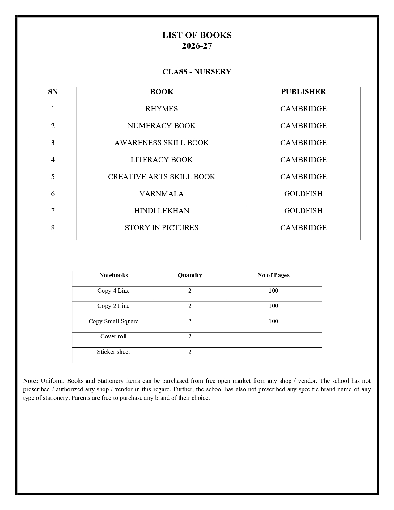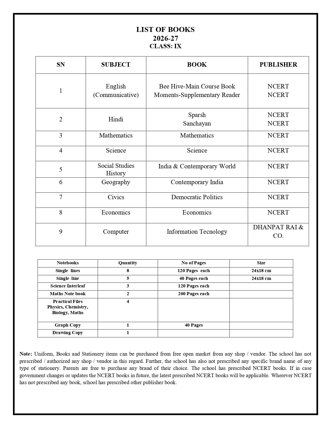 Book List 2026-27
