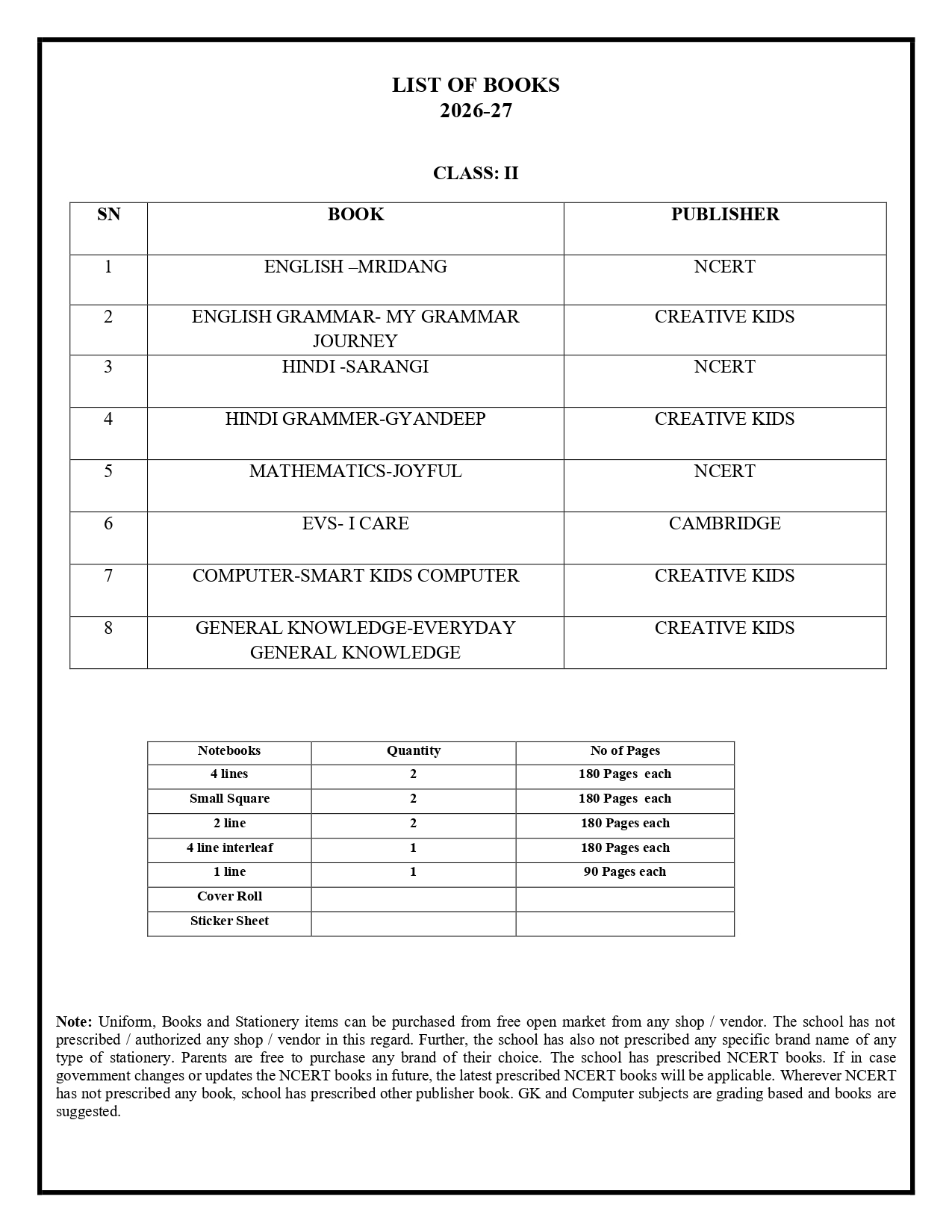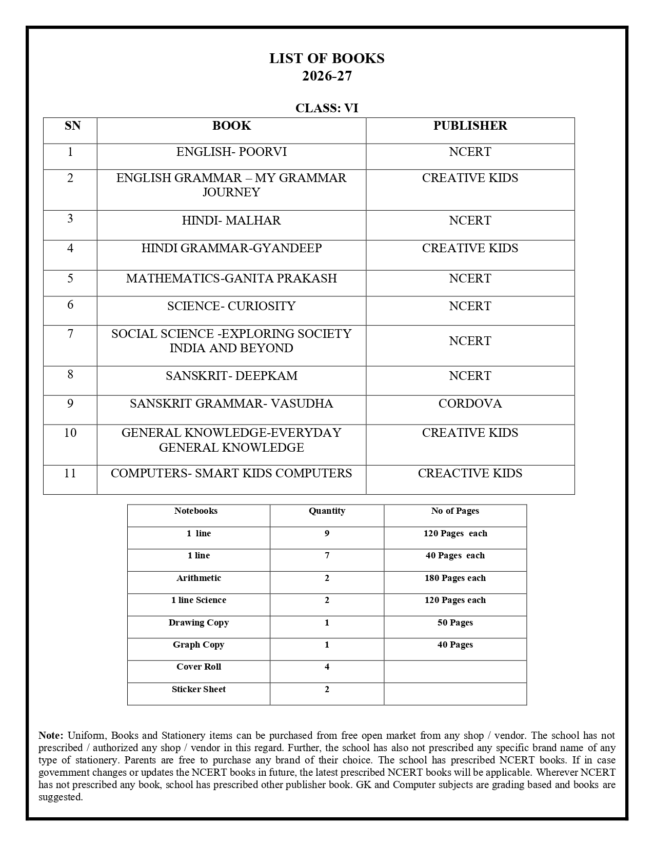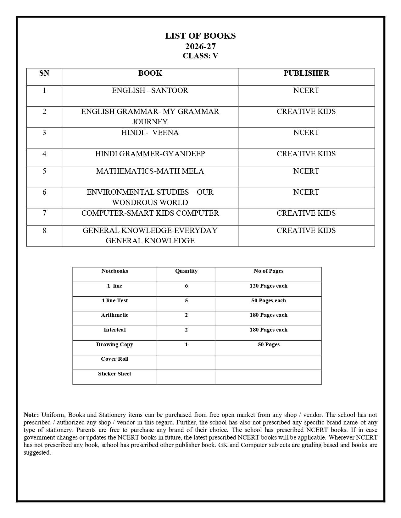 Book List 2026-27