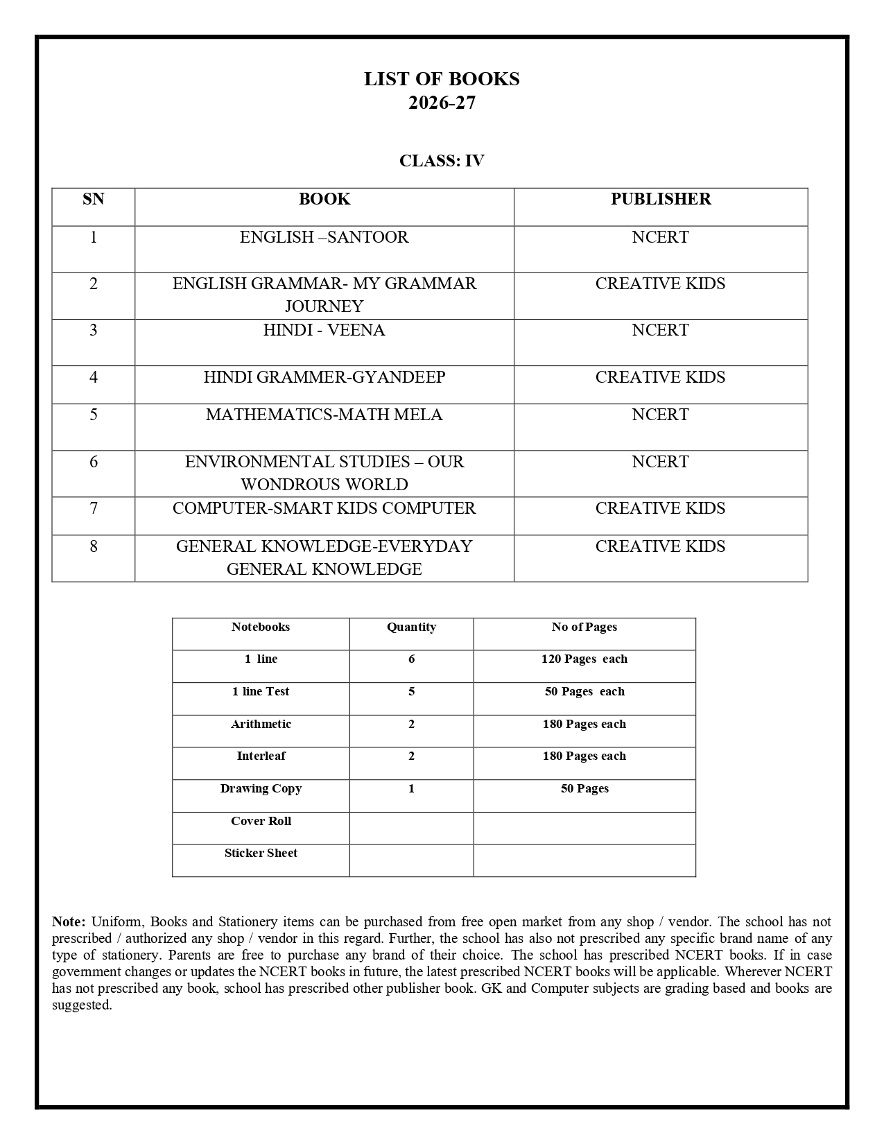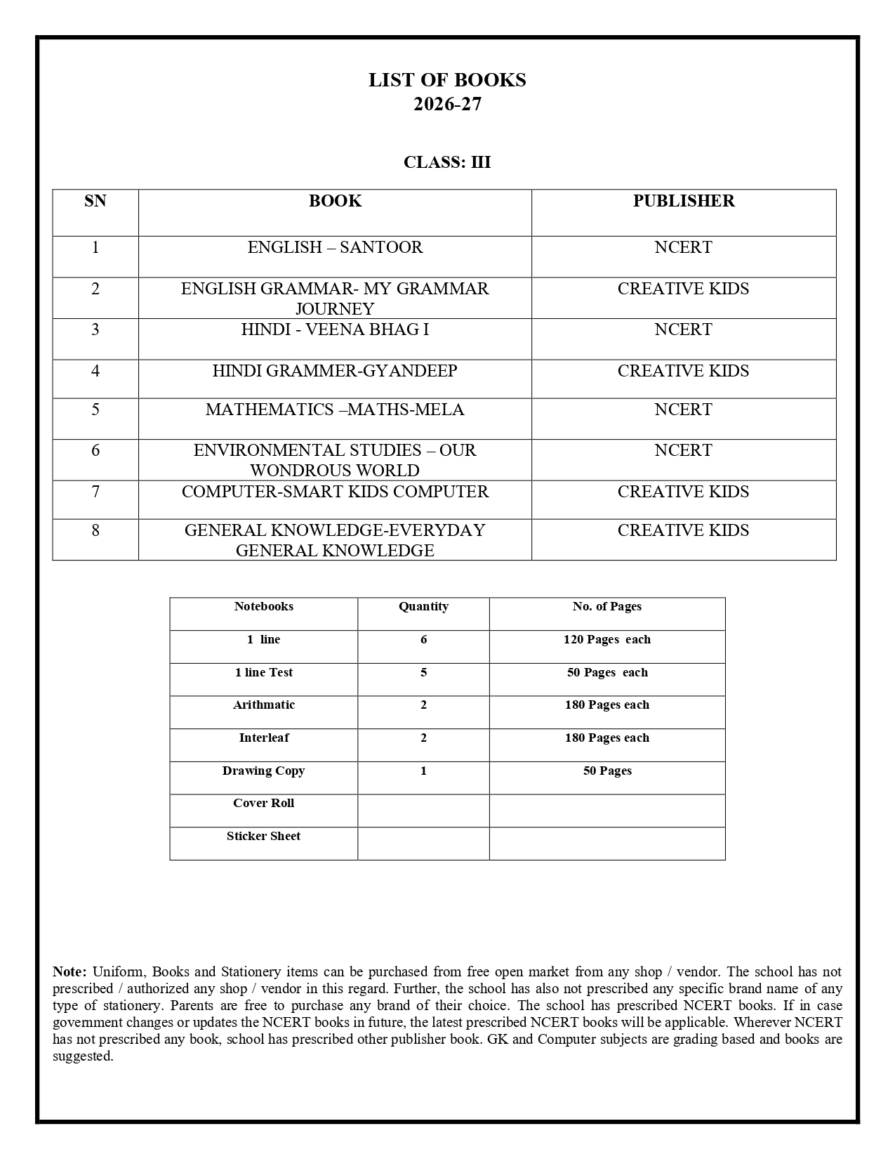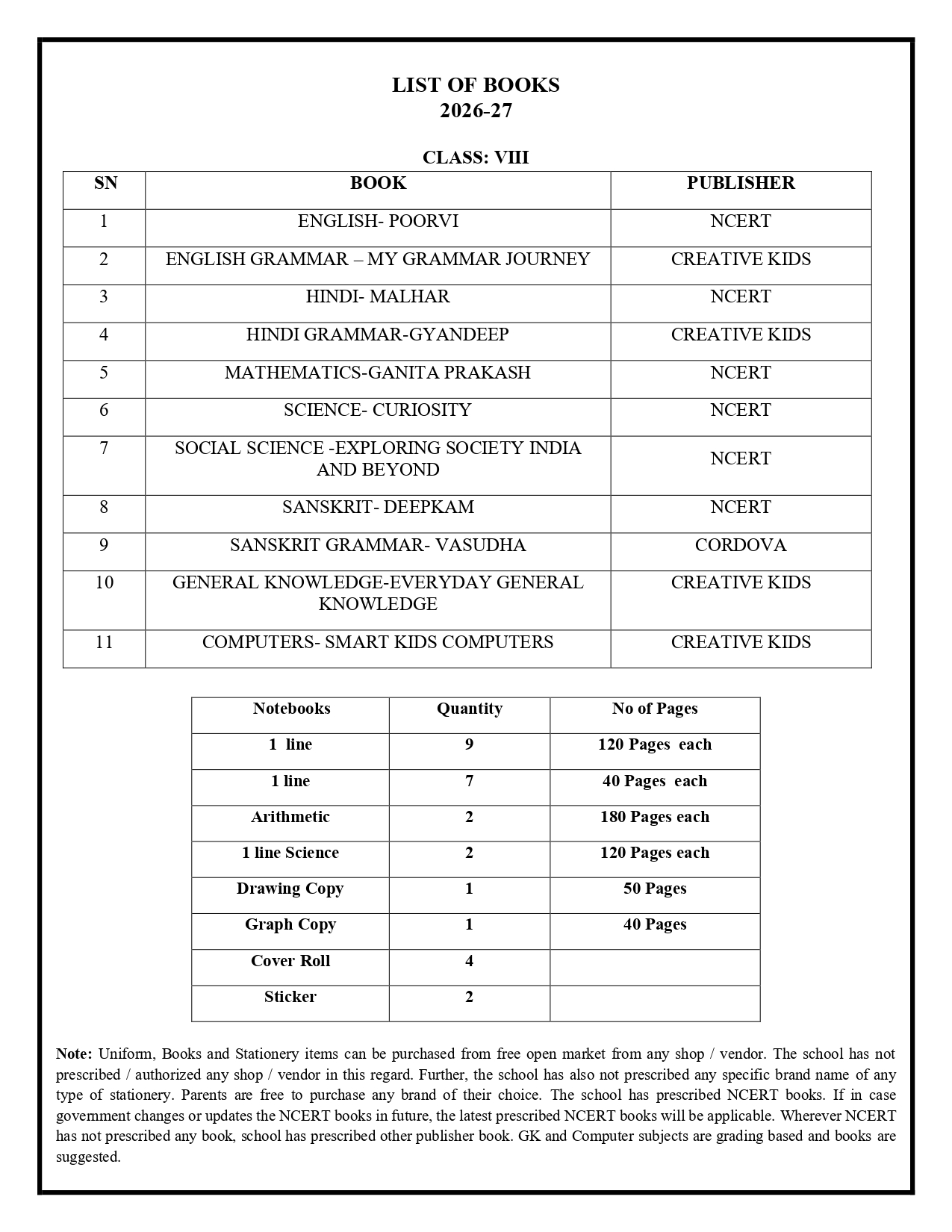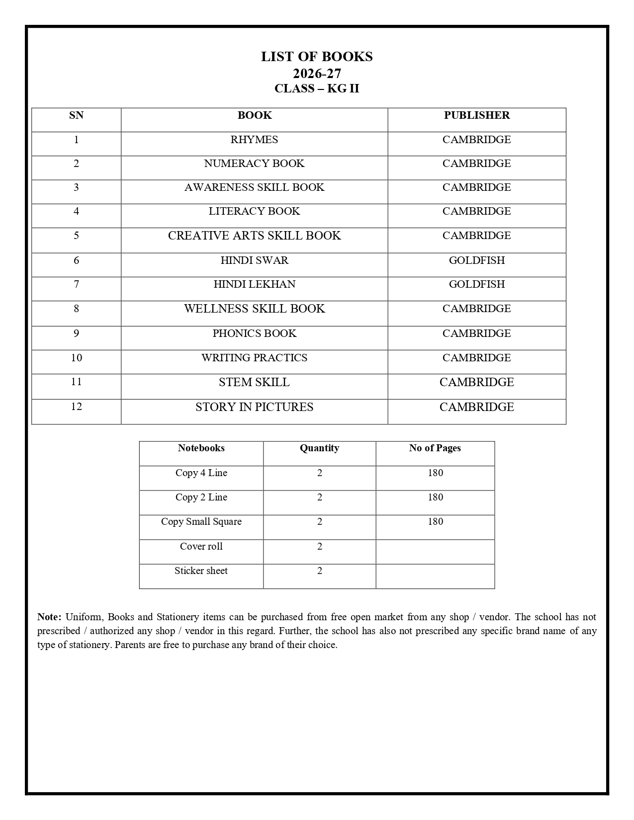 Book List 2026-27